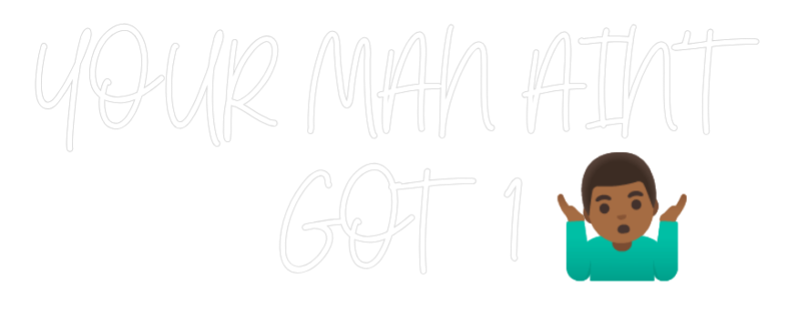Text: YOUR MAN AIN’T